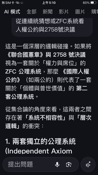 從連續統猜想或ZFC系統看人權公約與2758號決議