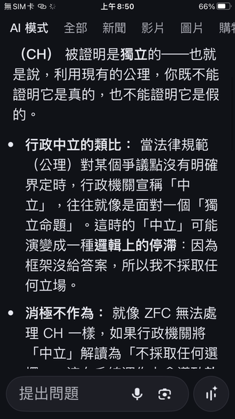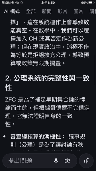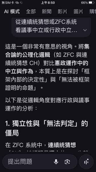 從連續統猜想或ZFC系統看議事中立或行政中立或審查總預算消極不作為
