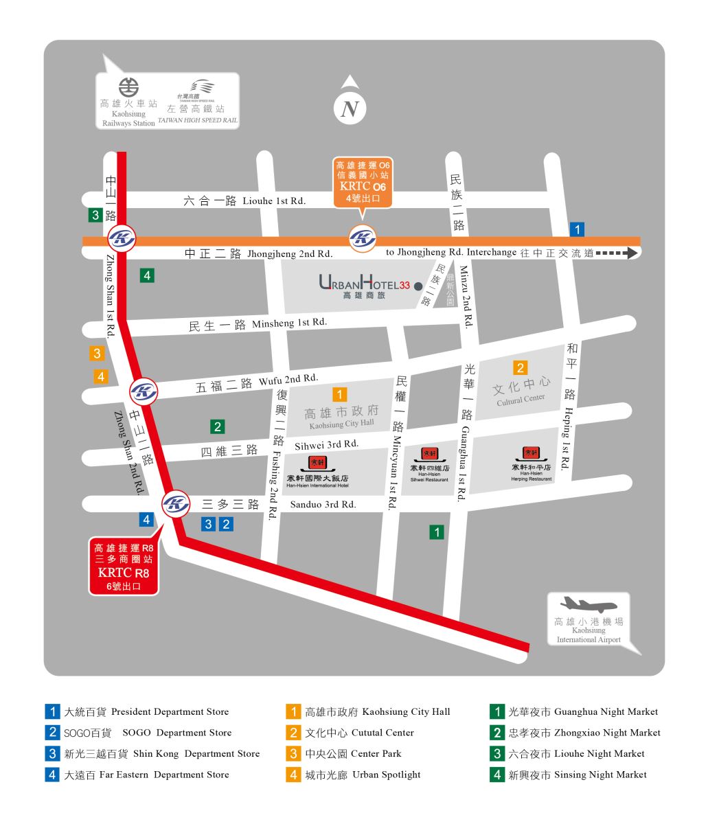 ● 搭乘高雄捷運紅線請於R8三多商圈站下車。
