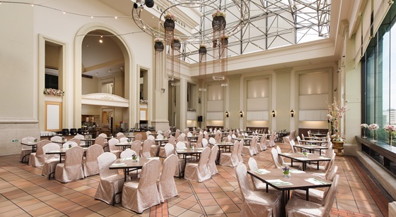 義大利庭園風格、高挑寬敞的玻璃天幕空間設計,在這裡提供豐盛的自助式早餐及午、晚餐西餐料理。