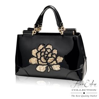 【D.F.Flor Eden】奢華風玫瑰漆皮牛皮款手提斜背2用包