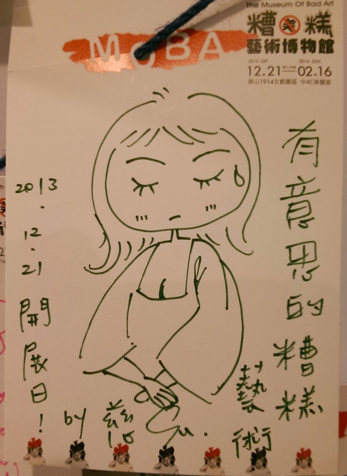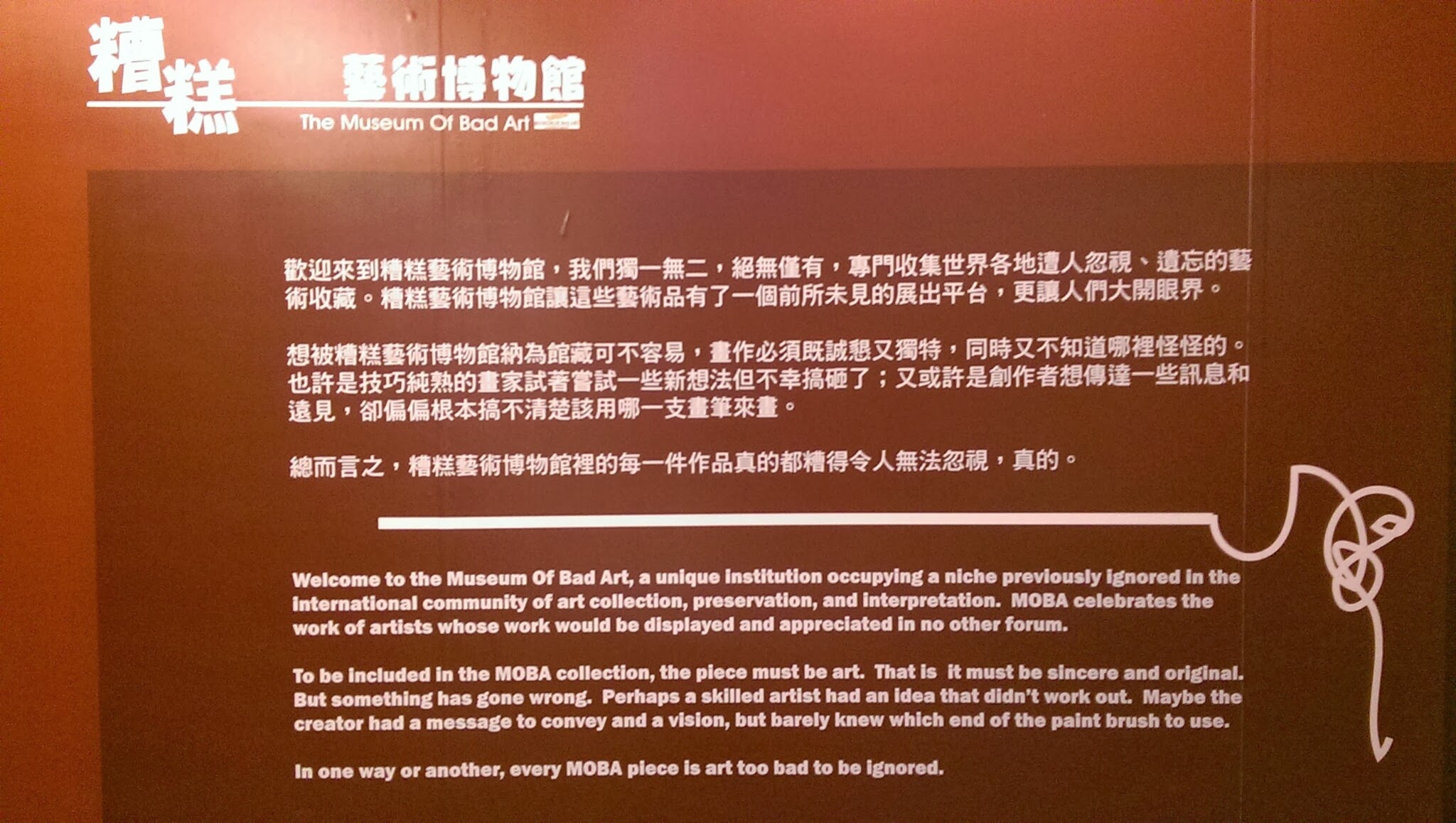 最近不曉得為什麼,突然想起以前曾經看過一個很奇特的展覽,就翻找手機雲端裡的相片,終於找到了!就是這個~「糟糕藝術博物館」的展覽。再次看了一遍照片,真的很有趣耶!可惜當時沒有很精確地拍好展品,有些作品沒有詳細的資訊可供參考了。