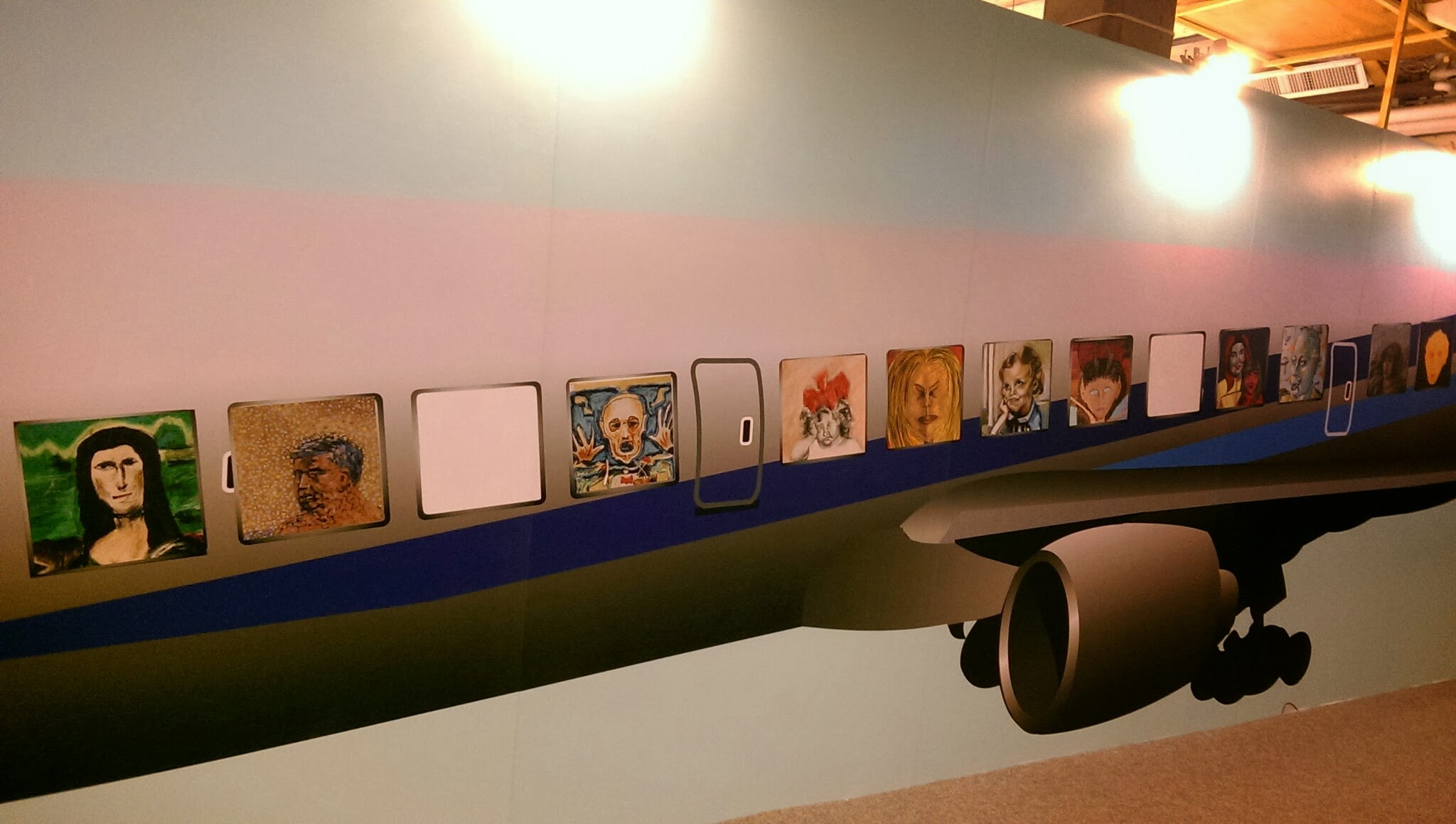 機艙造型的窗口上展示著館藏名作。