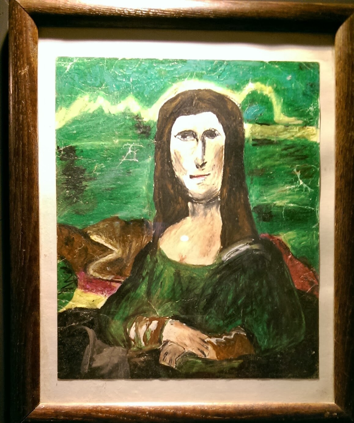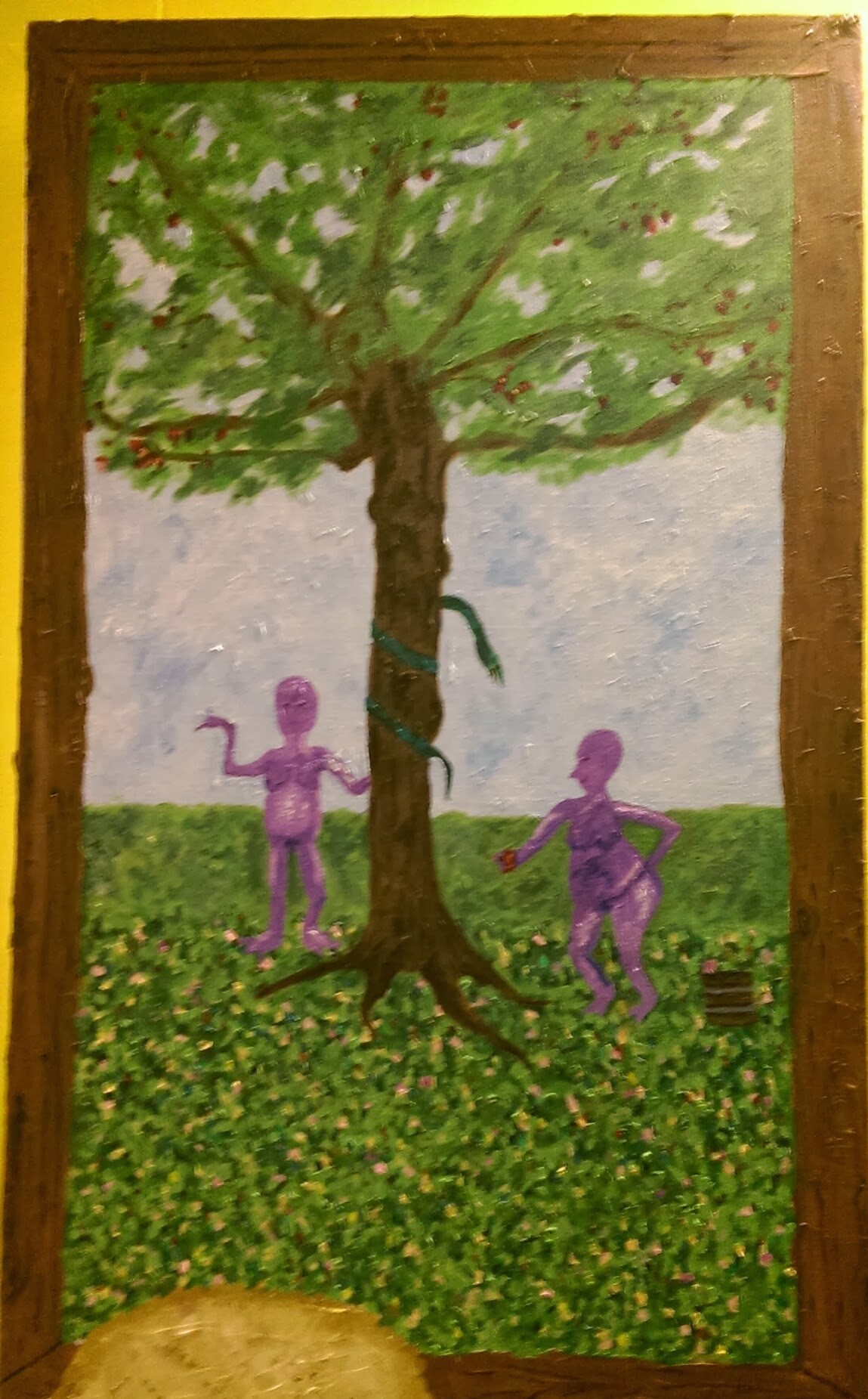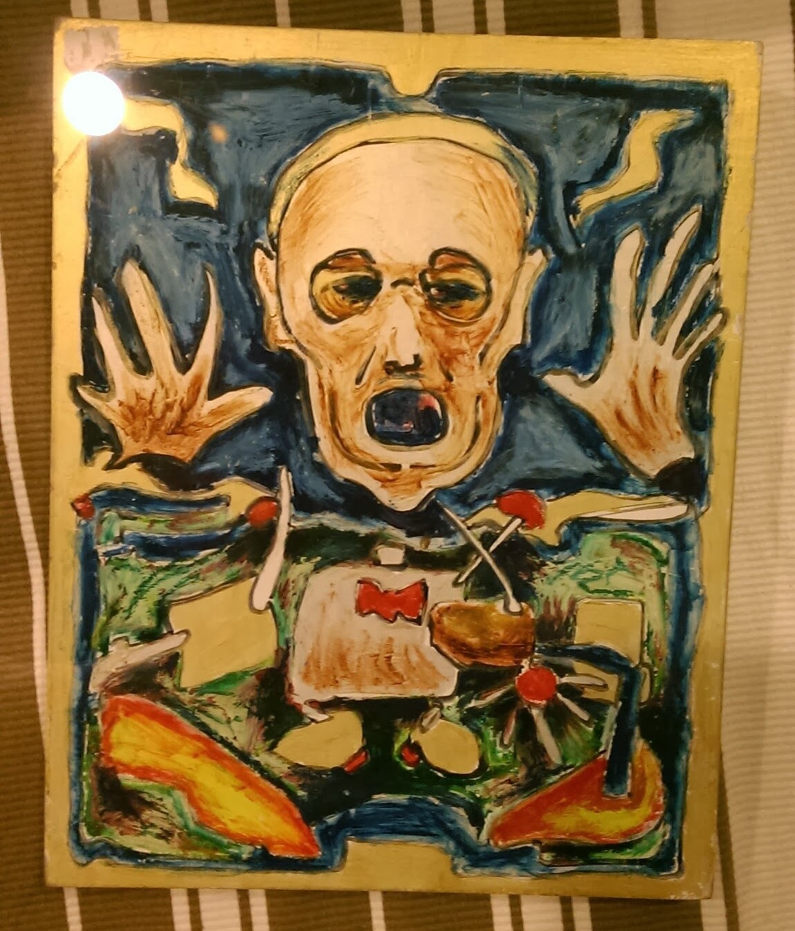 羅浮宮有鎮館三寶,糟糕藝術也有鎮館三寶:〈花園裡的露西〉、〈星期天,喬治坐在馬桶上〉和〈穿夏威夷草裙的雜耍狗〉。不過,翻遍我拍的照片,只有這幅。其他的作品,有興趣的人自己去google吧!