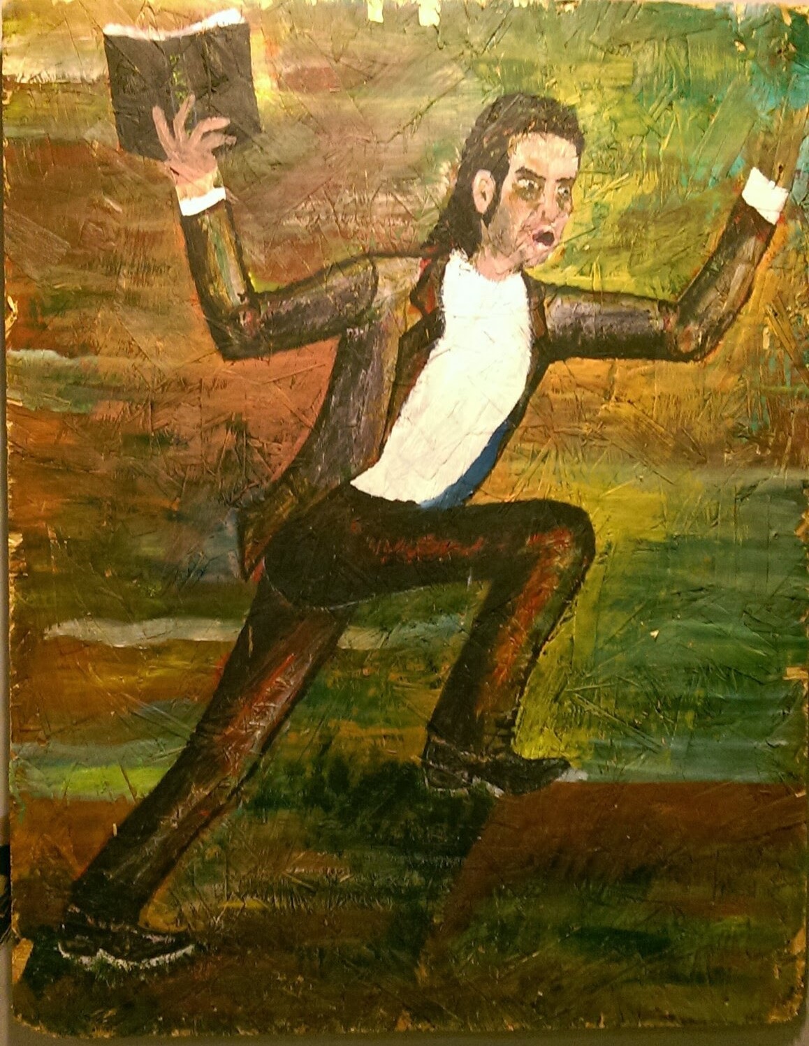從愛德華.孟克的畫作*得到的靈感,跟海綿寶寶頂著一樣造型的這個男人用力舉起雙手大叫「致人生」!