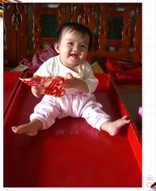 「木盛」是去丹比租的,拿回來後正準備把物品擺上去,媽媽的第一個外孫也是米樂的第一個侄女,正好睡醒,看著大夥忙他也不甘寂寞的啊啊叫,看著「木盛」米樂一時興起,就造就了這個畫面…