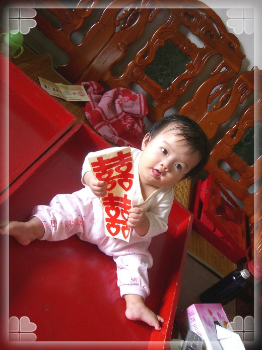看倌們,訂婚的「木盛」,放個小孩上去也不賴阿,這也是祝賀之意耶,看這小孩手上還拿著喜字喔…夠喜氣吧…