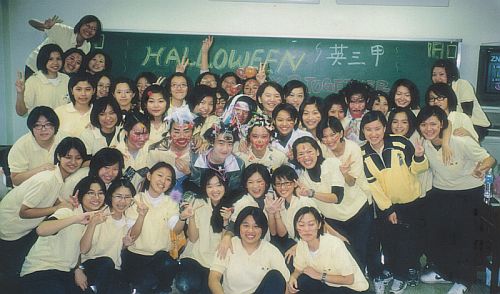 相片說明: 萬聖節那天辦看誰最嚇人妝扮比賽,全班還去校園每班展示遊行,超難忘的回憶!