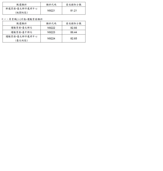中華郵政股份有限公司101年職階人員甄試各甄選類科錄取人員最低分數一覽表