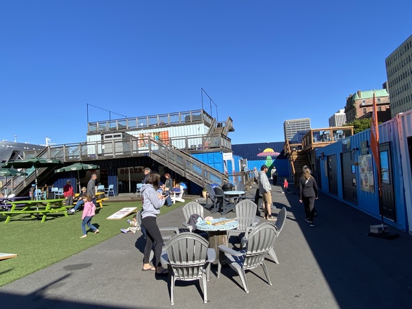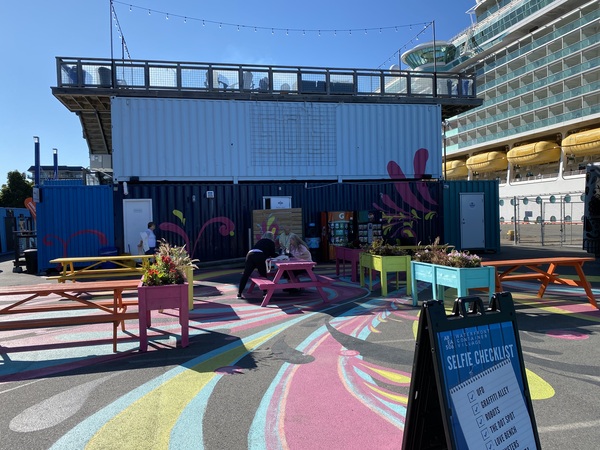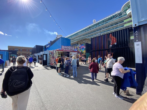 聖約翰的人們是在經商上是𩆜活的,看到美好的郵輪商機,2021年的七月底,在一個港邊的音樂會中,主辨人員宣佈要建立一座商圈的計劃。不到一年的時間,就在碼頭的一座停車場上,用貨櫃箱蓋起一座供遊客和居民共用的商圈,效率之高令人佩服。
