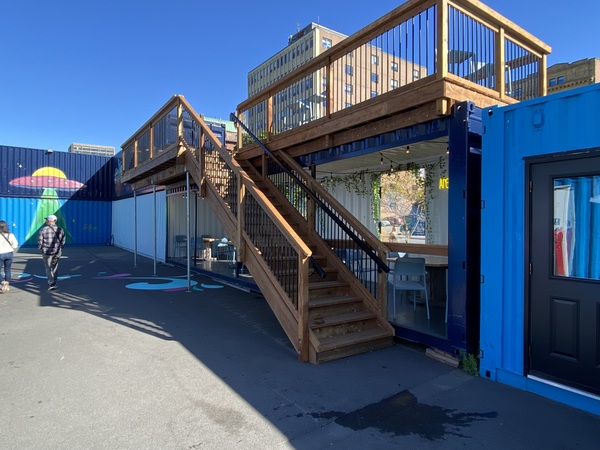 聖約翰的貨櫃商圈設立在港邊,是欣賞港區風景好地方,平坦的貨櫃頂部,擺上舒適的座椅,是無價的觀景平台。商圈內許多貨櫃的上面可說是欣賞聖約翰古老的城區的建築和港口話動的最佳選擇。那些藝術化的梯道,可說爭奇鬥艶,發揮了建築師的創意風格。