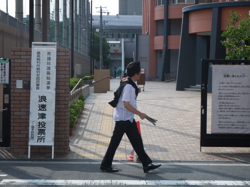 晚上八點結束投票,開始跟著NHK看開票轉播之前,先騎著自行車到大阪街頭逛逛吧!關西週日的日落黃昏美極了,雖然不能跟著投票,但我的媒體細胞還是想辦法要混進「日本橋中學校」的投票所,去偷瞄兩眼。