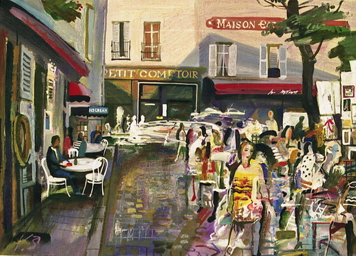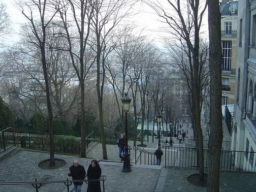 「是嗎?」他咯咯的笑起來,並且有一種仕女舉扇的弧度,很自然的用手遮住他的嘴。然後他說,「你是去Montmartre,『蒙馬特藝術村』?喔,那裡的春雨比秋天冷多了呢!」
