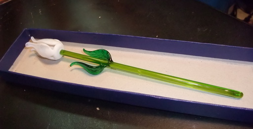 買的這一支白綠色鑲嵌的玻璃玫瑰,是2010年很好的紀念。