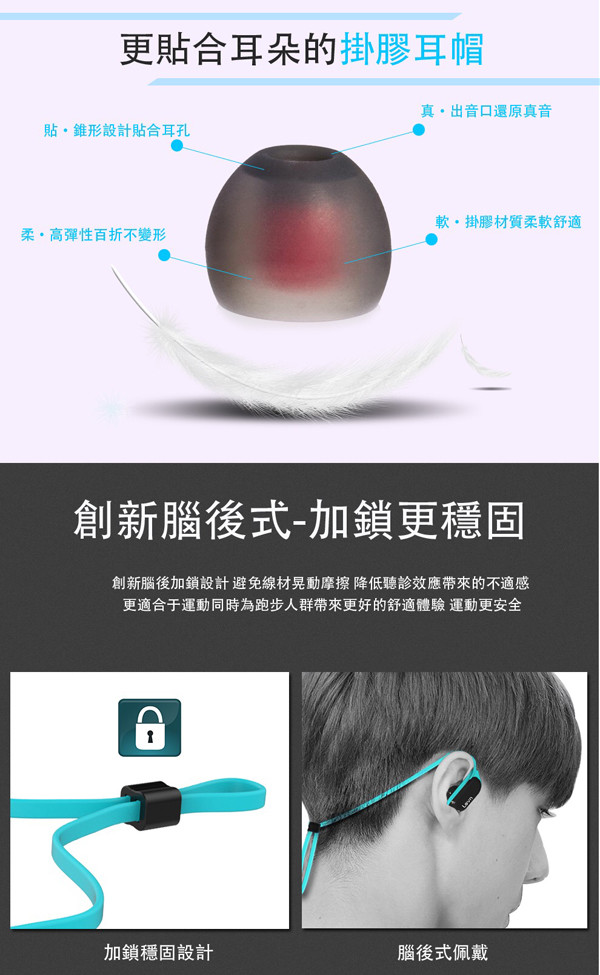 創新腦後式配戴,加鎖穩固設計