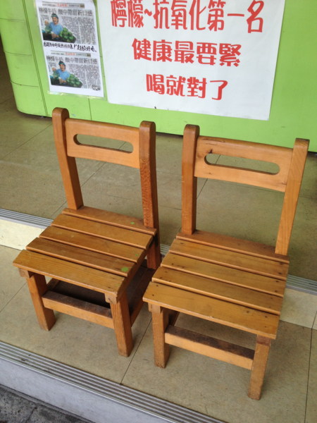 . 有多久沒看到這種椅子了呢? 因為店內只有三張高腳椅 客人反應不夠坐 . . 所以我們特地找來... 小學生的椅子 好小張! 我坐在上面都覺得屁股滿出來了 . . 坐在外面的小椅子 可以等人 也可以...
