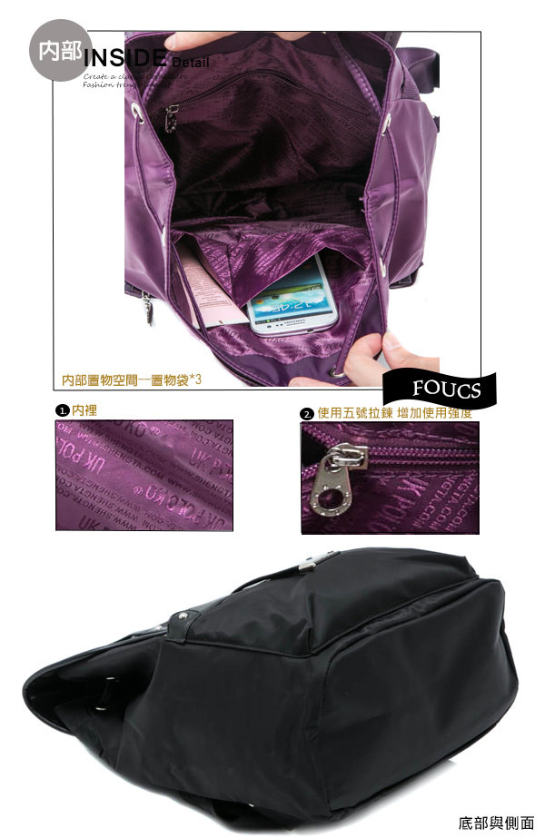 內袋數: 開放式置物袋*2 拉鍊暗袋*1