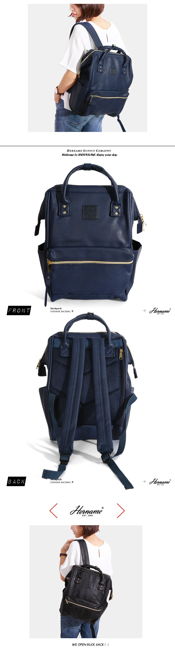 【Hername】大開口皮革後背包 -大款 (藍色)開箱
