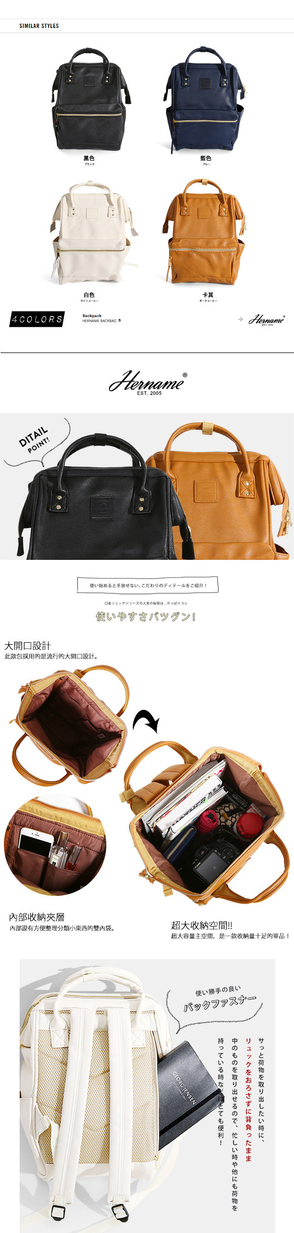 【Hername】大開口皮革後背包 -大款 (藍色)開箱文優缺點比較