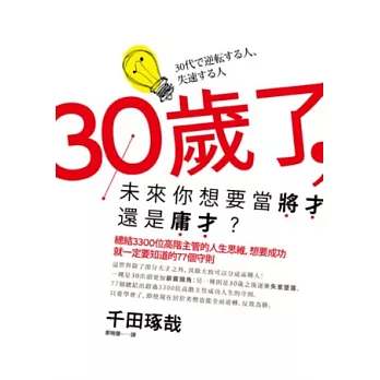 漫畫讀通柯維成功學![]() | 30歲了,未來你想要當將才還是庸才?:總結3300位高階主管的人生思維,想要成功就一定要知道的77個守則![]() | 兩分鐘有幹勁:30歲前晉身「人生勝利組」要知道的63個成功習慣![]() | |||