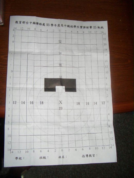 最後看靶,我的阿兵哥把我的靶紙連同板子拿給了我,