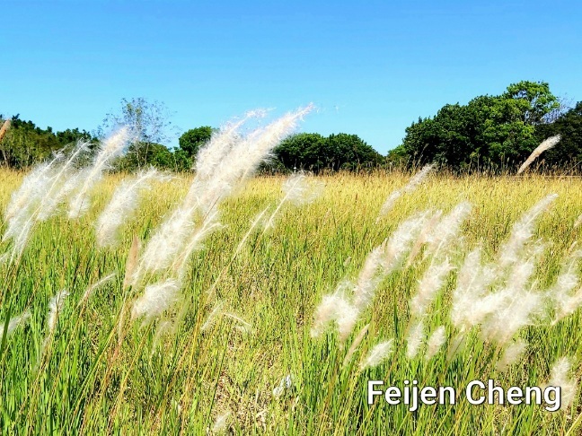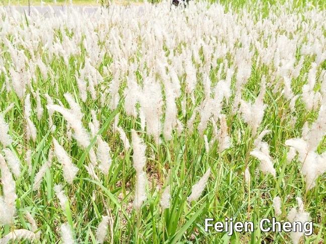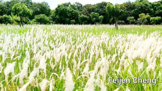 那天是個大晴天,藍天清澈湛藍無比,白茅棉絮在藍天的襯托與艷陽照射下,格外潔白耀眼,彷彿加了光芒特效,閃耀著銀白光芒,微風徐徐吹拂時,迎風搖曳,形成一片片夢幻銀白花海,如夢似幻,很可惜當時沒帶手機無法拍照,近中午三十幾度炙熱高溫讓人懶得回家拿手機再次出門,萬萬沒想到隔幾天再去,那片白茅已被除掉。錯過那次白茅花盛況後,再也不曾遇過那般壯觀、潔白亮眼的白茅大爆發美景。