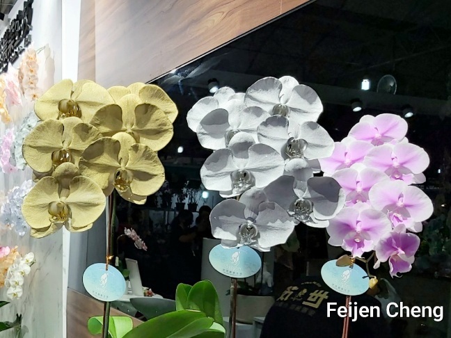 (今年的噴染蘭花攝於台灣國際蘭展販賣區,最後一張仿真恐龍攝於前年台灣國際蘭展。)