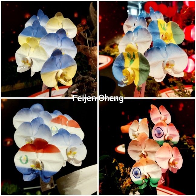 上兩張是去年國際蘭展展出的國旗蘭花色彩繽紛,顏色鮮豔。