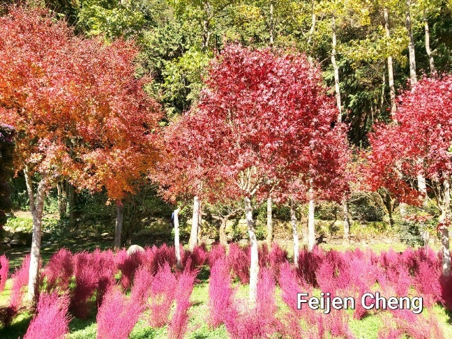十二月初為了賞金黃水杉再訪杉林溪,原以為已過波波草季節,想不到園區內還有許多波波草,顏色已由翠綠轉為紅色,療癒又可愛,此外還有銀杏與零星楓紅可賞。