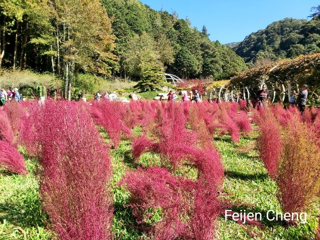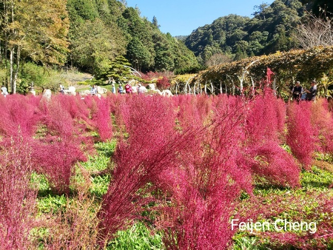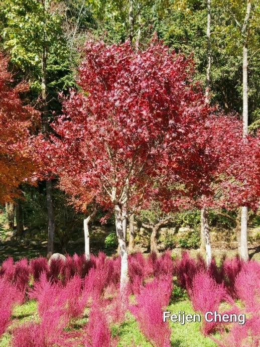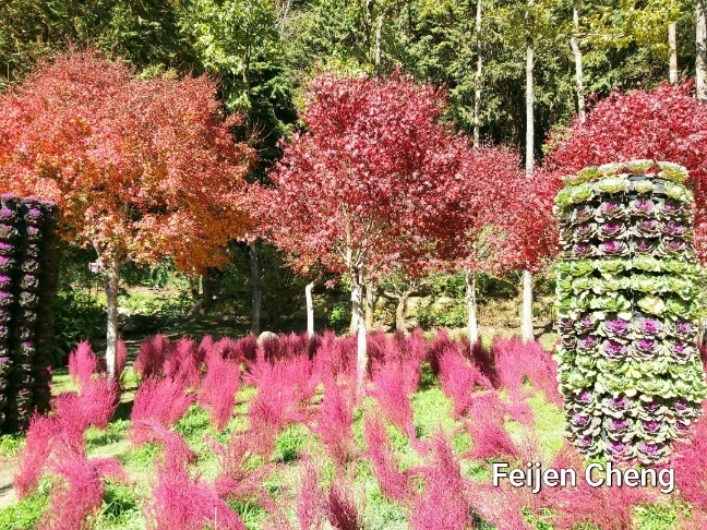 前年到杉林溪看波波草時,大部分的波波草種植於花卉中心室內,户外只展出一些波波草讓人頗為失望,去年如願的波波草種在户外,一株株紅色波波草與楓紅將綠色山巒點綴的繽紛又美麗。