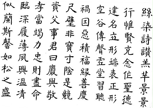 那時,每天放學回到家都是先到祖父書房, 書桌上有只大硯台 和幾枝毛筆, 書房裡也有一股墨汁的松香味, 祖父母常常沒事都在寫字, 晚上都是祖母耐心地幫忙削鉛筆, 做完功課, 央著祖母講些晚報上的故事, 有時由祖母抓著手練習毛筆描紅! 祖母寫得一手好字, 尤其是王羲之的小楷! 捏捏雖花了好多工夫練字, 只能磨自己的耐性, 寫的字是一輩子也難以望其項背!
