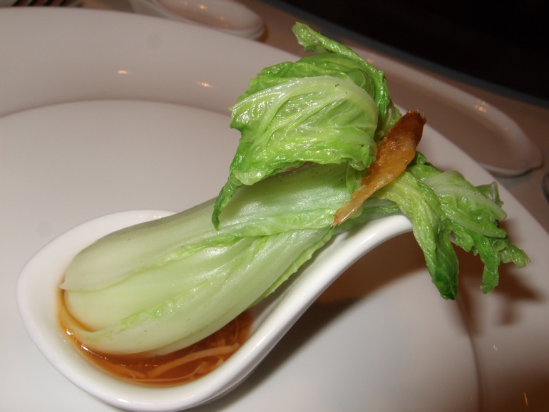 娃娃菜蒸煮過, 佐以干貝醬 !