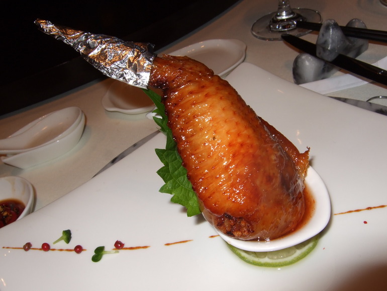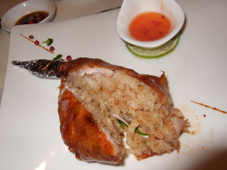 糯米香料填於雞翅之中.