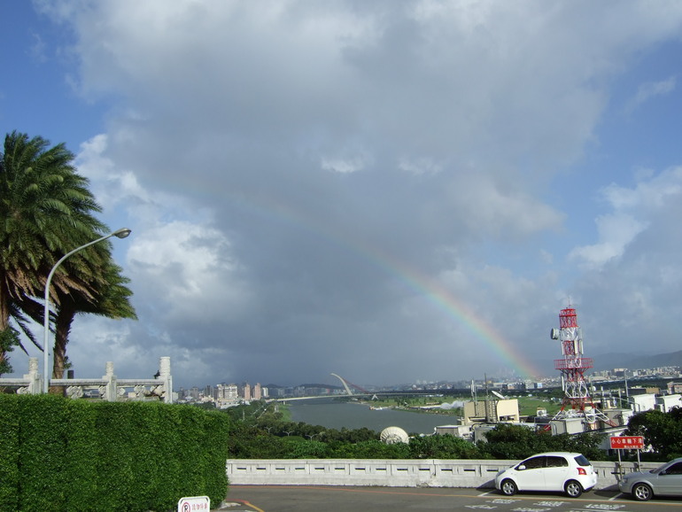 9 月 22 日 星期一, 颱風尾巴剛掃過台北的天空, 炙熱的艶陽中, 時而飄來一陣狂雨, 喜見天邊的一道彩虹.