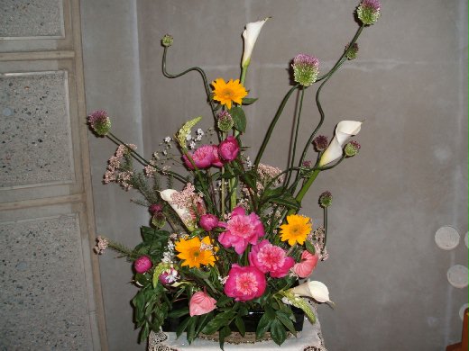 從花材的顏色, 季節, 枝葉的剪裁 開始摸索起, 鼓起勇氣! 生平第一次在公開場合裡插花! 還好捏捏的媽媽和婆婆都是插花的 "先生" SENSEI ! 母親是"松風流", 婆婆的插法則是較自然的 "古流", 所以經常一遇到不懂的地方, 就問這兩位現成的老師!