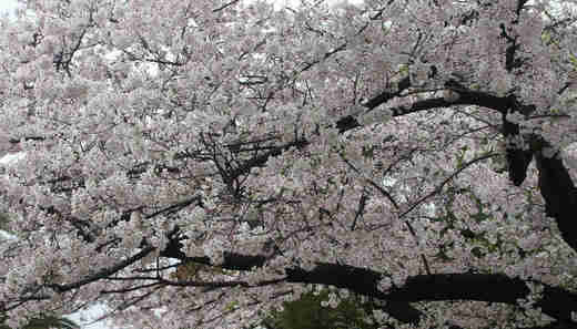 日本的櫻花都開在三月底四月初,到時候滿枝滿樹、滿街滿院、一片雪白十分壯觀。