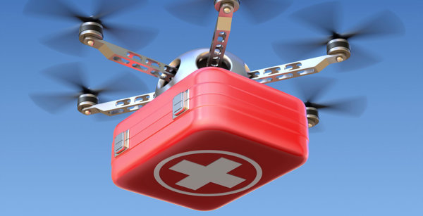 根據瑞典Karolinska Institute的研究,搭載763公克去顫器(AED)的無人機本身約有5.7公斤重,飛行速度毎小時最快可達75公里的條件下,實際飛行距離只有3.2公里,但竟然比救護車早到(模擬心跳停止而求救的現場OHCA)16分鐘,這對分秒必爭的急救行動而言,算是很大的突破。