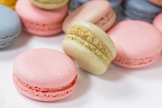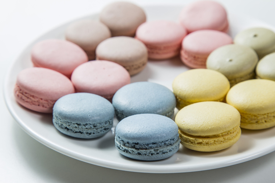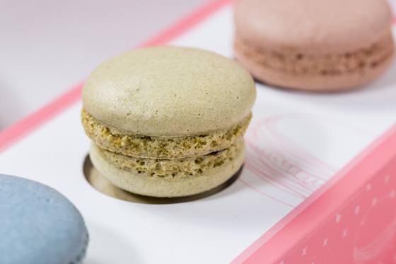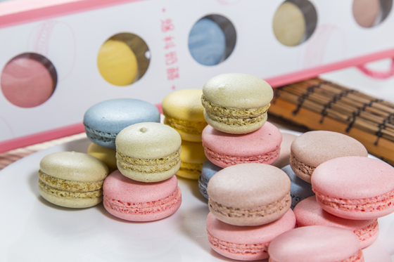●酥香法式馬卡龍,夾入香濃甘納許,夢幻滋味