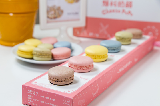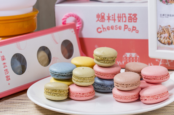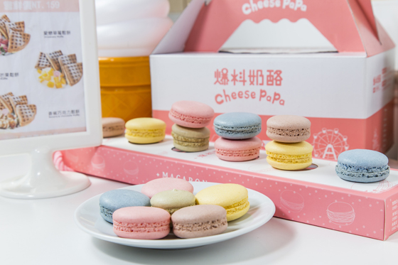 信義區人氣品牌「爆料奶酪」天然系點心,粉彩馬卡龍的夢幻滋味!水果餅皮夾入巧克力,外酥內綿密,包裝俏麗可愛!