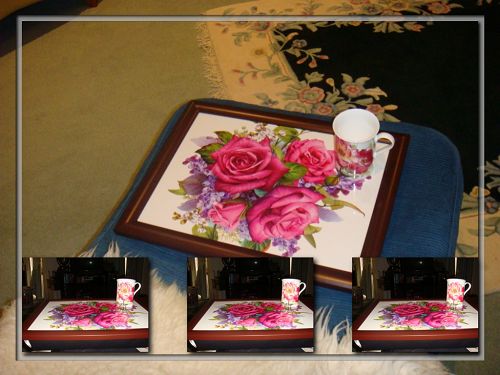 這美麗的玫瑰圖Laptray配上那美麗的杯子