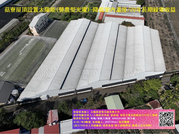 菇寮屋頂設置太陽能(營農型光電)降低室內溫度+20年長期綠電收益