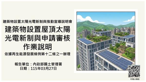 建築物設置太陽光電發電設備標準行政院/內政部國土署 施行日期2026年8月1日