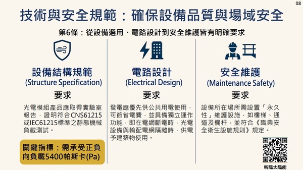 依本標準設置之太陽光電發電設備與其線路設計及施工應符合下列規定: