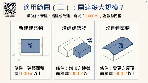 一、新建建築物建築面積達一千平方公尺以上。