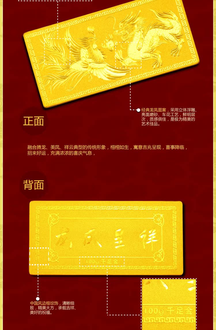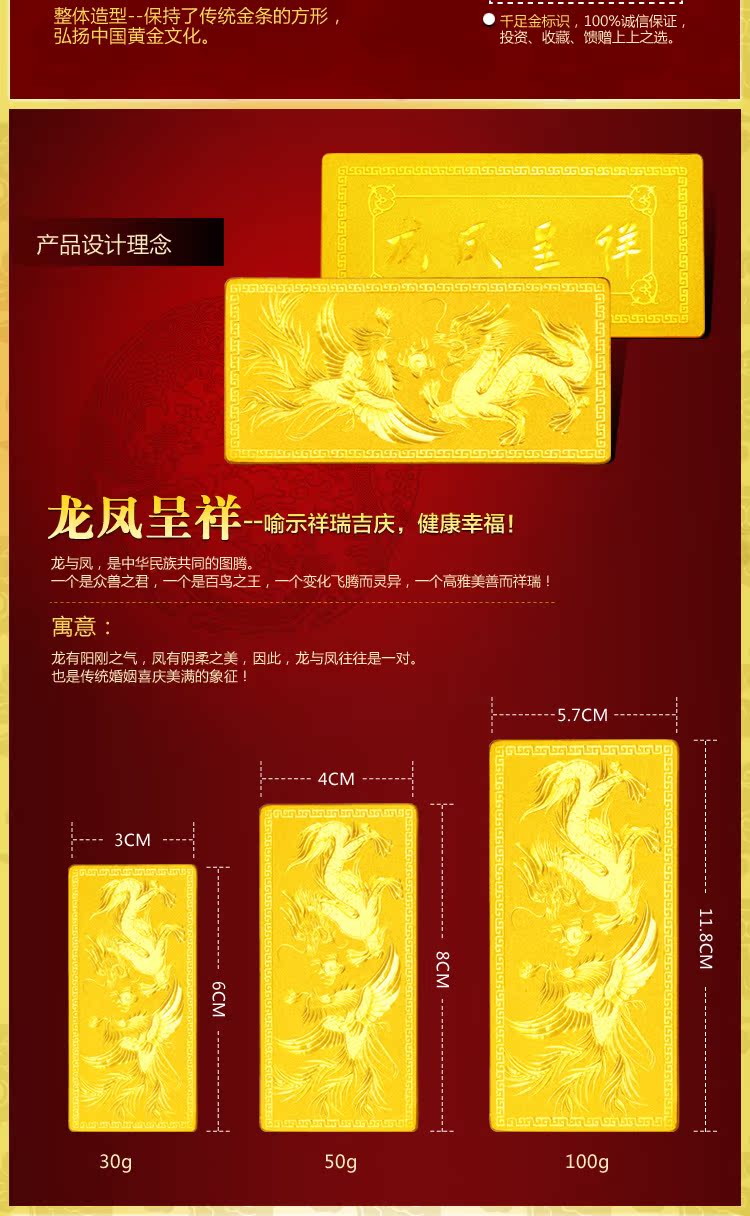 天貓購物商城249元-克【分期0首付】999千足金收藏黃金龍鳳猴年投資金條 升值 - 520306587237