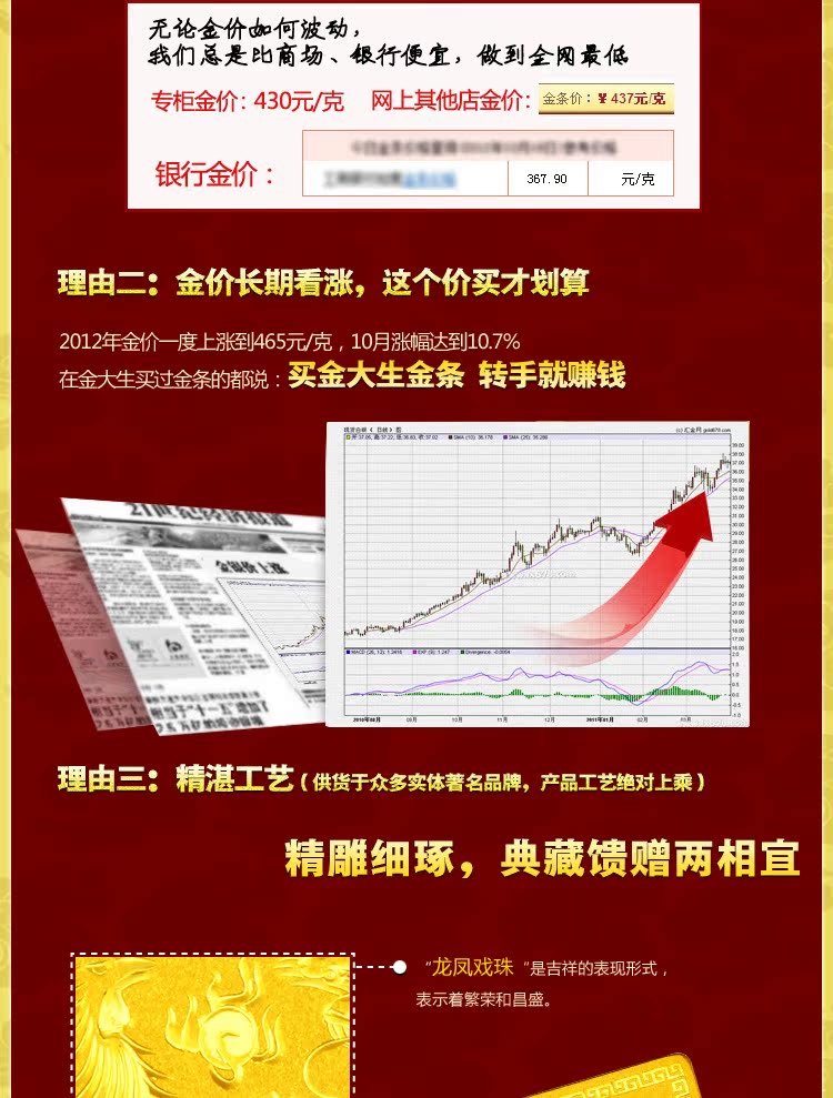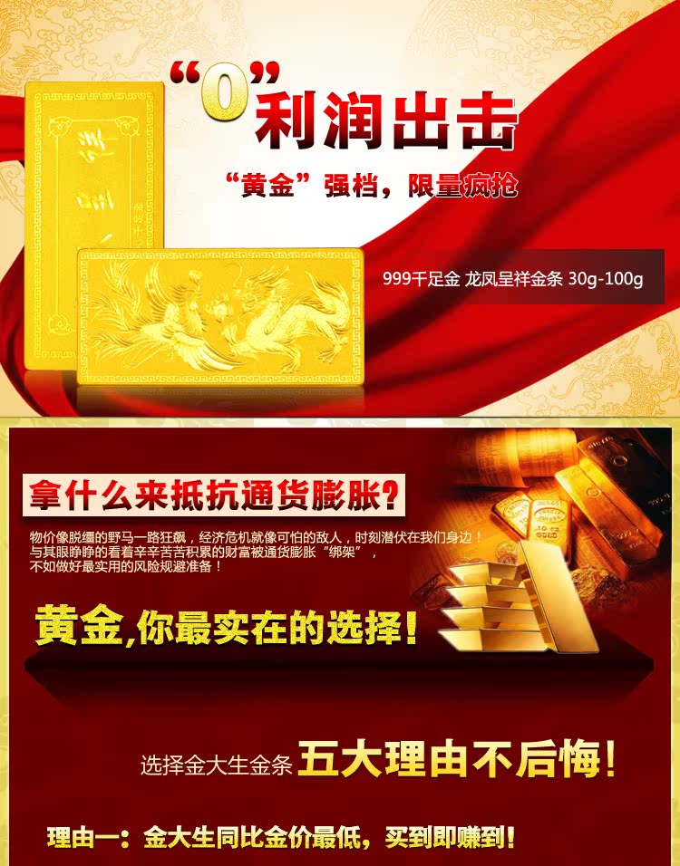 發現網購價格最便宜,249元/克【分期0首付】999千足金收藏黃金龍鳳猴年投資金條 升值 - 520306587237還曾在 天貓購物商城 類造成搶購熱潮,