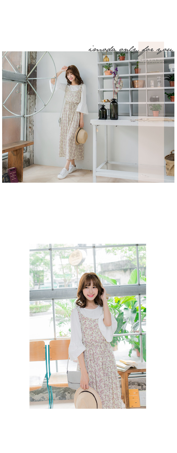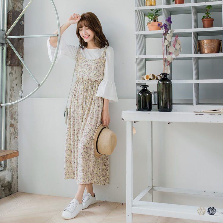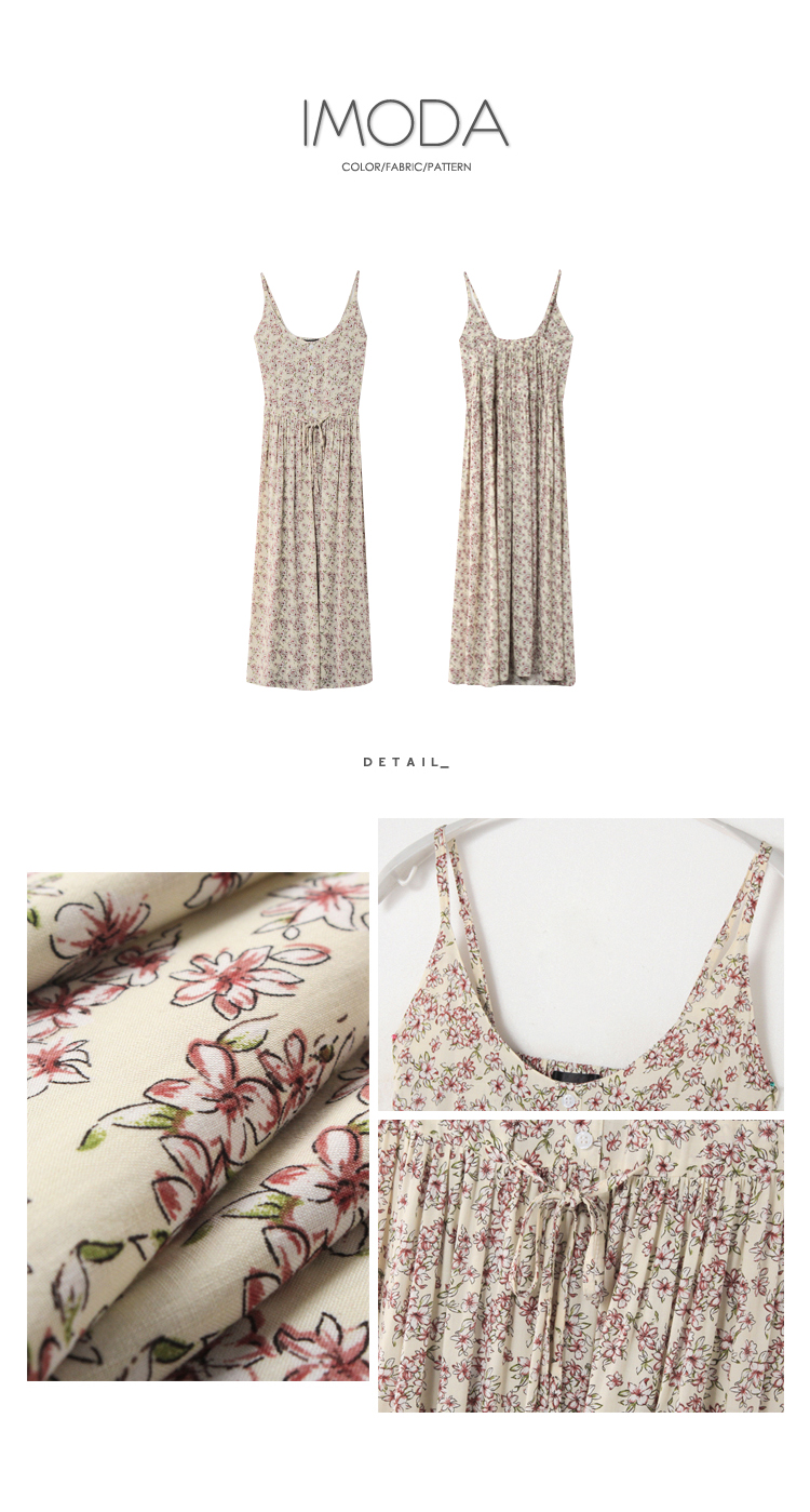 0621新品 小碎花細肩帶排釦綁帶棉感長洋裝.2色
