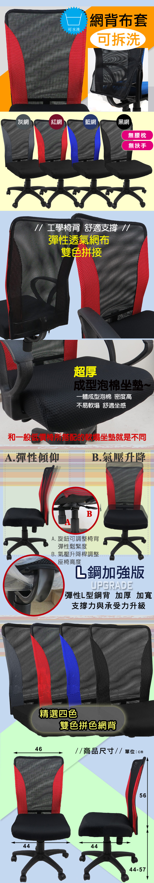 ◆符合人體工學椅背框為鋼骨結構結合,雙色彈性透氣網布,符合人體工學曲線設計,讓您的腰背有依靠減少腰痠背痛