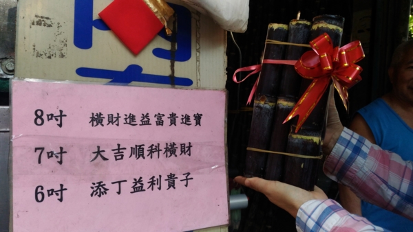 轉角賣甘蔗的店也開了,便過街向老板打招呼拜年,一眼看到一個平常沒出現的招牌