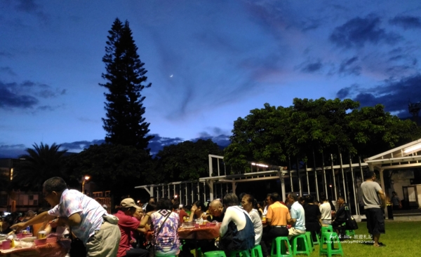 這晚在高聳山巒的山腳下,我們學習生命的本質,原住民族的樂觀、豪爽天性,跟著唱歌、跳舞,草皮上微風徐徐的晚餐,吃得天空一彎新月都出來探頭,五十載同學盡歡,享受高山靈氣、森野清風的心靈洗滌,期待2020〝達蘇達蘇湳豐年祭〞再相見。